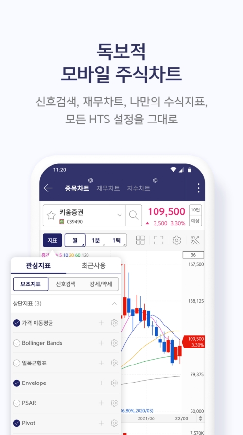 주식 투자에서 가장 중요한 것 중 하나가 바로 차트를 분석하는 일이죠. 이 앱은 스마트폰의 작은 화면에서도 PC 화면 못지않은 상세한 차트 분석을 할 수 있도록 지원하더라고요. 이동평균선이나 볼린저 밴드 같은 여러 보조지표를 입맛에 맞게 추가하거나 변경할 수 있어서, 이동 중에도 심도 있는 기술적 분석을 이어갈 수 있다는 점이 정말 만족스러웠습니다.