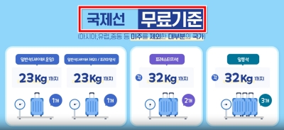 위탁 수하물 역시 무료로 부칠 수 있는 기준이 정해져 있어요. 대부분의 국제선 무료 기준을 살펴보면, 일반석은 23kg짜리 1개, 프레스티지석은 32kg짜리 2개, 그리고 일등석은 32kg짜리 3개까지 무료로 맡길 수 있답니다. 이 기준을 초과하면 추가 요금이 발생하니 짐을 쌀 때 참고해야 해요.