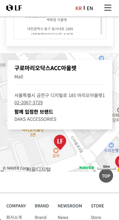 목록에서 특정 매장을 선택하면 이렇게 지도와 함께 상세 정보가 떠요. 정확한 주소와 전화번호는 물론, 어떤 브랜드가 함께 입점해 있는지도 확인할 수 있죠. 방문하기 전에 지도 앱으로 위치를 다시 한번 확인하고, 전화를 걸어 영업시간이나 재고 여부를 물어보는 것도 헛걸음을 방지하는 좋은 방법이에요. 이제 이 정보를 가지고 쇼핑 계획을 세우면 되겠죠.