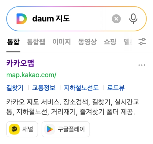 저는 보통 지도 앱을 쓸 때, 검색창에 'daum 지도'라고 입력해서 들어가는 편이에요. 요즘은 이름이 '카카오맵'으로 바뀌었지만, 이렇게 검색해도 가장 위에 결과가 나와서 바로 사이트로 이동할 수 있거든요. 앱을 따로 설치하지 않아도 웹에서 바로 쓸 수 있어 편리해요.