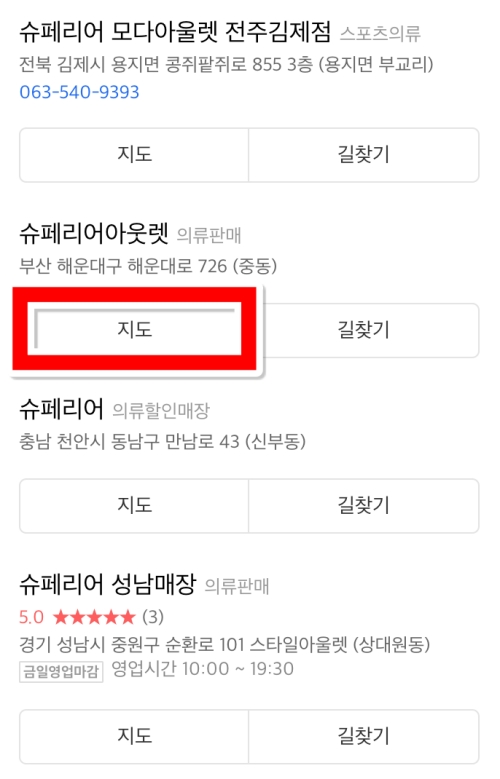 슈페리어아울렛 상설할인매장 위치 검색