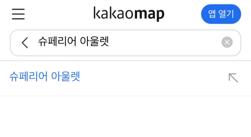 이제 제가 찾고 싶은 매장 이름을 검색창에 직접 입력할 차례예요. 오늘은 '슈페리어 아울렛'을 찾아볼 거라, 검색창에 '슈페리어 아울렛'이라고 정확하게 입력했어요. 오타가 나면 엉뚱한 결과가 나올 수 있으니 정확히 쓰는 게 좋더라고요.