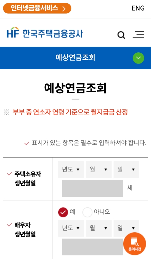 이제 내 정보를 넣어야 하는데 가장 먼저 주택소유자 생년월일과 배우자가 있다면 배우자 정보까지 정확하게 넣어야 해요. 저는 생일을 잘못 넣어서 계산이 엉뚱하게 나왔던 실수를 한 적이 있는데 숫자를 하나씩 꼼꼼하게 확인하는 게 좋더라고요. 부부 중에서 나이가 더 적은 분을 기준으로 금액이 정해진다는 점을 꼭 기억하면서 정보를 입력하세요.