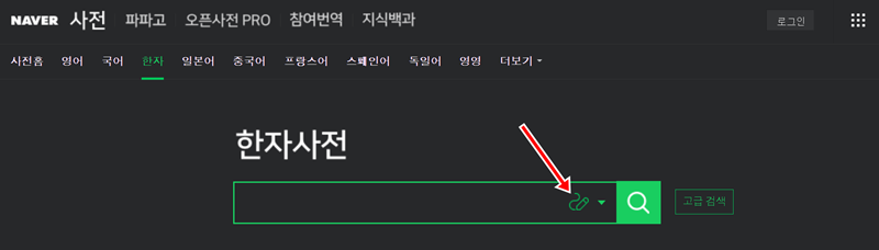 1. 검색창 바로 옆에 있는 붓 모양의 아이콘을 선택합니다. 이 아이콘이 바로 필기인식기를 여는 역할을 하여, 키보드로 입력하기 어려운 한자를 직접 그려서 검색할 수 있도록 도와주는 첫걸음이 됩니다.