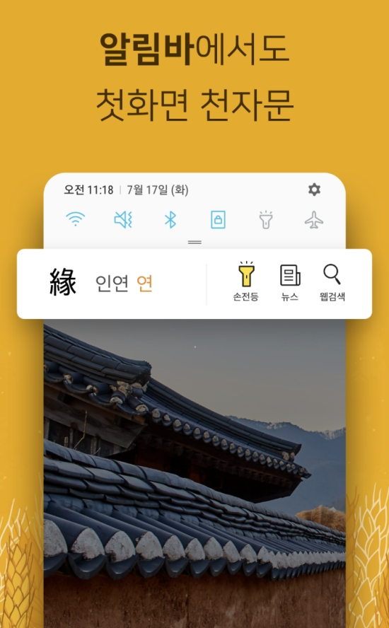 스마트폰을 켤 때마다 첫 화면에서 천자문을 하나씩 보여주어 자연스럽게 한자 학습을 유도하는 애플리케이션입니다. 따로 시간을 내지 않아도 일상생활 속에서 반복적으로 한자에 노출시켜 암기 효과를 높이는 데 도움을 줍니다.