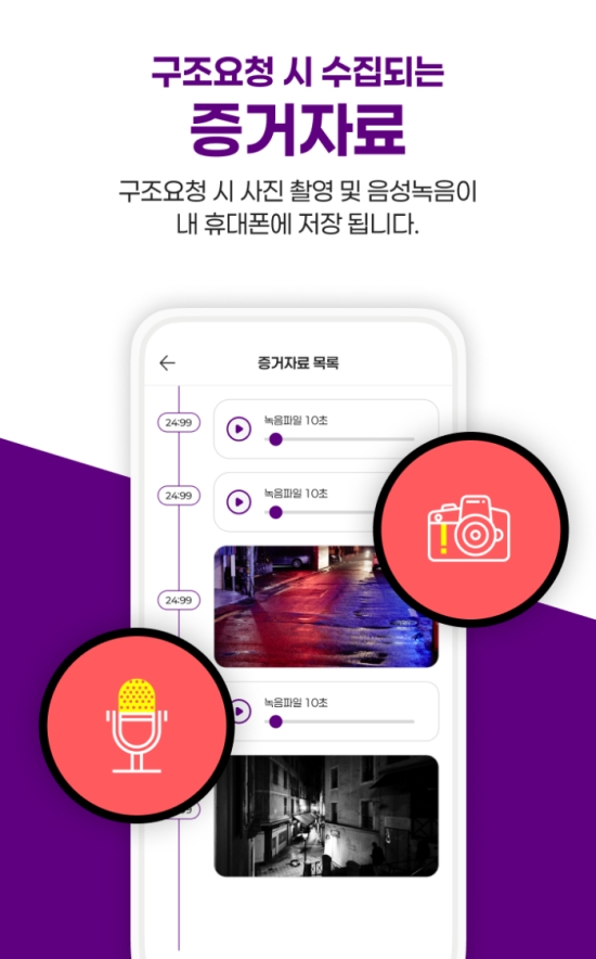 6. 구조 요청이 시작되면 사용자의 스마트폰은 자동으로 주변 상황을 사진과 음성으로 기록합니다. 이렇게 수집된 자료들은 만일의 사태에 대비한 중요한 증거로 활용될 수 있어, 단순한 구조 요청을 넘어선 실질적인 보호 장치가 됩니다.