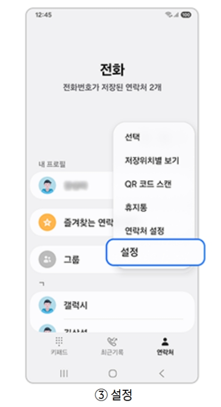 3. 여러 메뉴 항목 중에서 통화 기능의 전반적인 부분을 조절할 수 있는 '설정'으로 들어가 주세요. 이곳에서 통화와 관련된 다양한 기능들을 직접 변경할 수 있습니다.