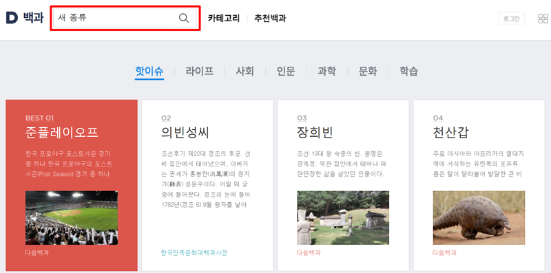 1. 평소 궁금했던 동식물에 대한 정보를 얻고 싶을 때, 백과사전 홈페이지의 검색창을 활용하면 매우 유용합니다. 예를 들어 '새 종류'라고 입력하고 검색하면, 조류에 관한 폭넓고 다채로운 정보의 세계로 들어가는 첫걸음을 뗄 수 있습니다. 이를 통해 막연했던 궁금증을 구체적인 지식으로 바꿀 수 있습니다.