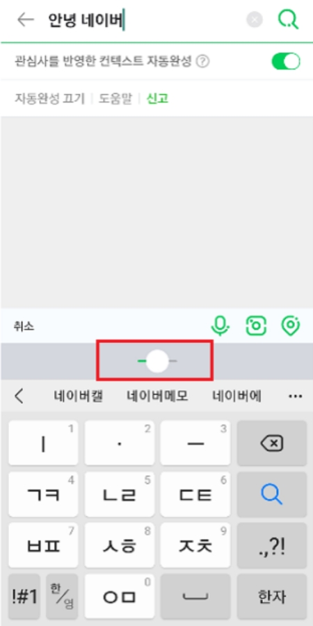 6. 검색창에 글자를 입력하다가 오타를 수정해야 할 때, 손가락으로 정확한 위치를 짚기 어려웠던 경험이 있을 거예요. 이때 키보드 위쪽에 나타나는 '키패드 슬라이더'를 좌우로 움직이면, 커서를 원하는 위치로 아주 쉽고 정교하게 이동시킬 수 있습니다.