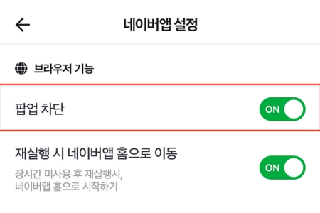 8. 인터넷을 이용하다 보면 원치 않는 팝업창 때문에 불편할 때가 많죠. 네이버앱 설정의 '브라우저 기능' 메뉴에서는 '팝업 차단' 기능을 설정할 수 있어요. 이 기능을 활성화해두면 불쑥 나타나는 팝업을 막아주어 훨씬 쾌적하고 깔끔한 웹서핑을 즐길 수 있습니다.