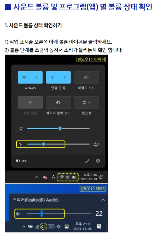 5. 기본적인 사운드 볼륨 상태를 확인하는 것도 중요해요. 작업 표시줄 오른쪽 아래에 있는 스피커 모양 아이콘을 살펴보세요. 이 아이콘을 통해 현재 설정된 볼륨 크기를 바로 알 수 있습니다. 소리가 너무 작게 되어 있다면 슬라이더를 움직여 소리를 조금씩 높여가며 들리는지 확인합니다.