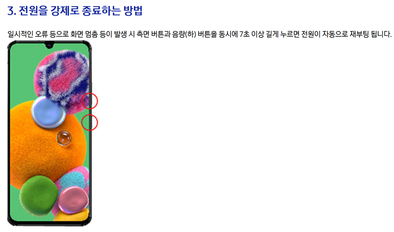 4. 스마트폰 사용 중 화면이 멈추거나 터치가 반응하지 않는 오류가 발생했을 때는 강제로 재부팅을 해야 해요. 이런 비상 상황에서는 '측면 버튼'과 '볼륨(하) 버튼'을 동시에 7초 이상 길게 눌러주세요. 그러면 화면이 꺼졌다가 다시 켜지면서 기기가 자동으로 재부팅되어 문제를 해결하는 데 도움이 될 수 있습니다.