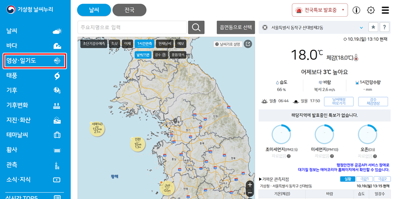 1. 기상청 날씨누리 홈페이지에 들어가면 다양한 날씨 정보를 볼 수 있습니다. 여기서 더 상세한 예측을 확인하려면, 화면 왼쪽의 메뉴 목록에서 '영상·일기도' 항목을 찾아주세요. 현재 날씨뿐만 아니라 앞으로의 변화를 그림으로 확인할 수 있는 곳입니다.