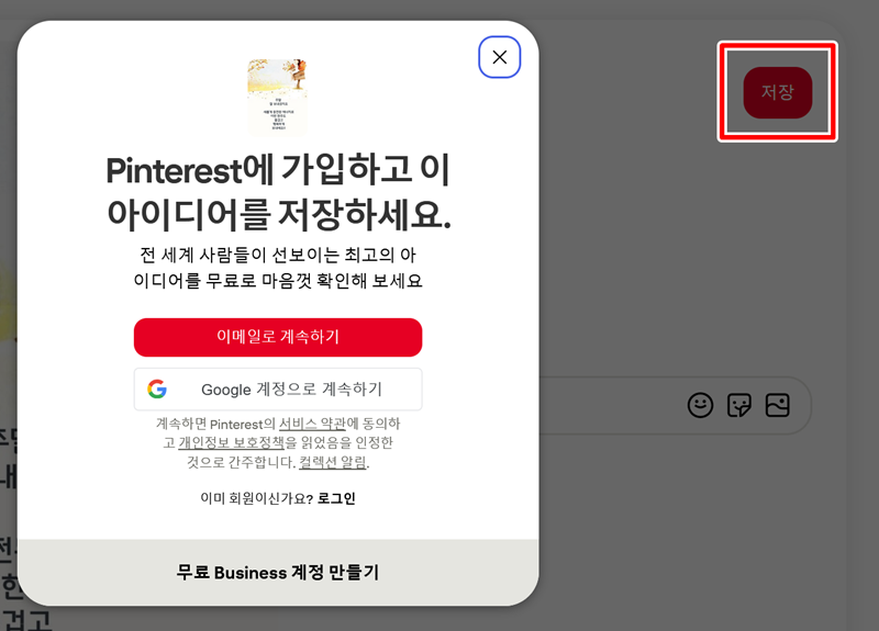 6. 마음에 드는 이미지를 나중에 또 보고 싶다면 '저장'을 통해 개인 공간에 보관할 수 있습니다. 이 기능을 이용하려면 간단한 가입이나 로그인이 필요하며, 자신만의 아이디어 모음집을 만들 수 있습니다.