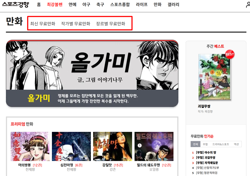 스포츠경향 무료만화
