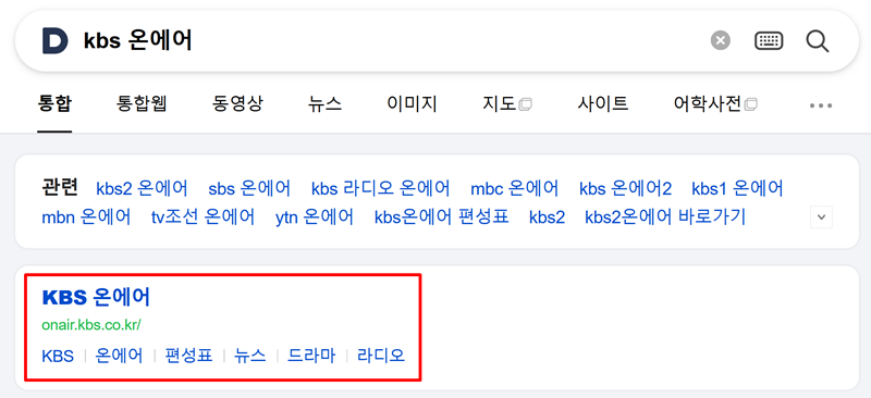 1. 검색창을 통해 'kbs 온에어'를 찾아 해당 주소로 이동하면, 여러 메뉴 중에서 'ON AIR'라는 항목이 눈에 띕니다. 이 부분을 통해서 실시간 방송 시청이 가능하도록 되어 있습니다.