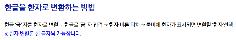 5. 본격적으로 변환을 해보기 위해, 입력창에 바꾸고 싶은 글자인 '금'을 한글로 먼저 적어 넣습니다. 한 글자씩만 변환이 가능하므로, 여러 글자를 바꾸려면 한 글자씩 반복해서 진행해야 합니다.