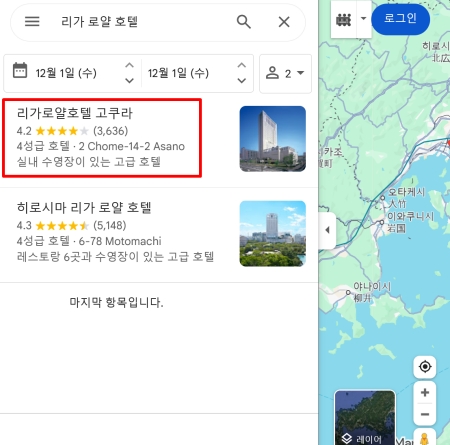 1. 먼저 구글 지도 검색창에 찾고 싶은 장소의 이름이나 주소를 입력합니다. 예를 들어, 일본에 있는 특정 호텔의 이름을 검색하여 위치를 찾아볼 수 있습니다.