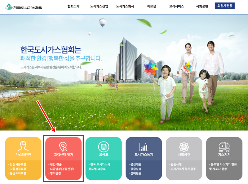 1. 먼저 우리 집 가스를 담당하는 곳이 어디인지 알아야 합니다. 홈페이지 중간에 있는 '고객센터 찾기'를 통해 내가 사는 지역의 도시가스사를 확인할 수 있습니다.